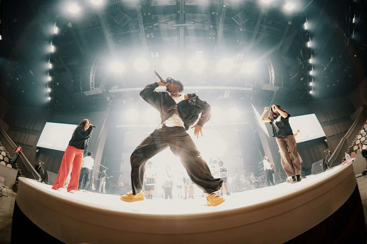 The overall goal was for the design to start on stage and reach out into the crowd. We knew we wanted bright and we wanted immersive.